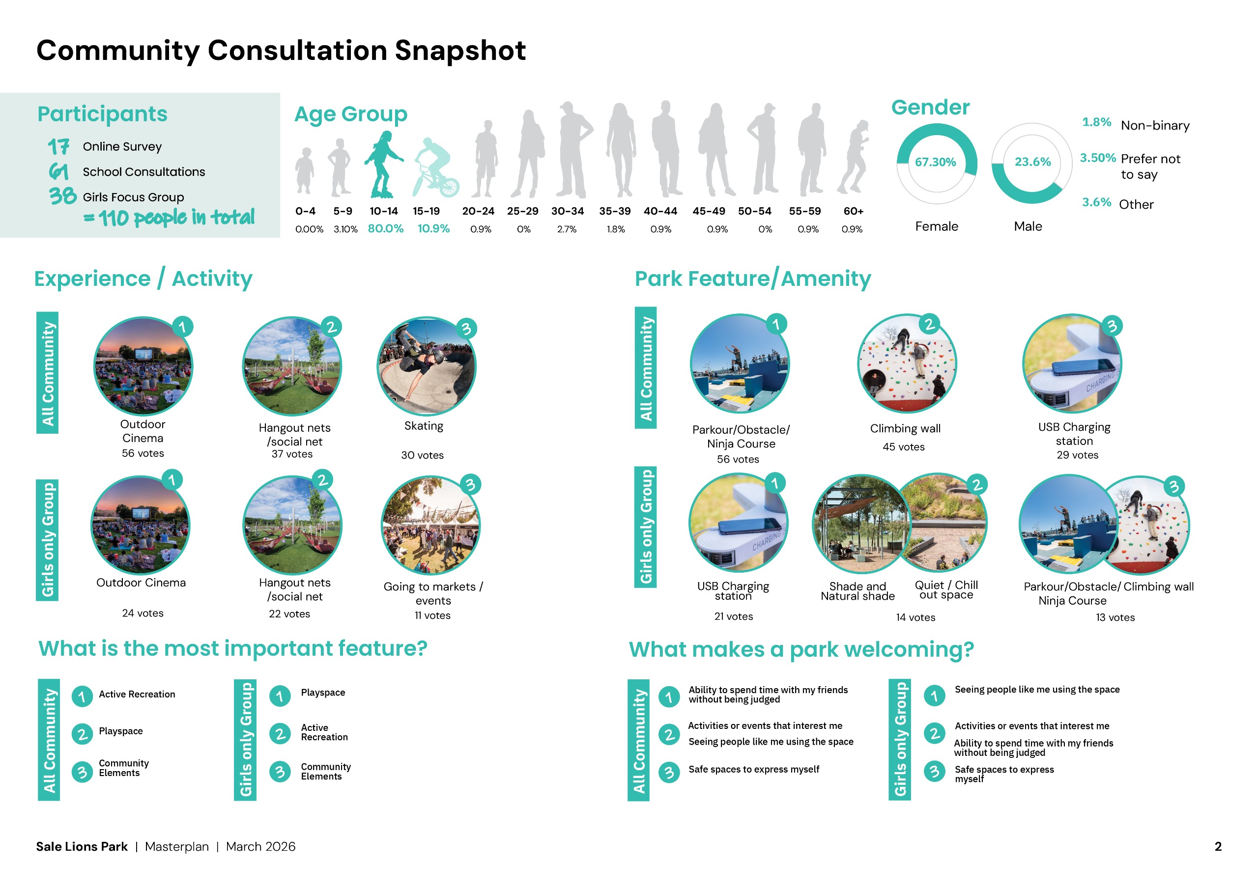 - Make Lion’s Park more active with welcoming inclusive spaces, especially for young women and girls